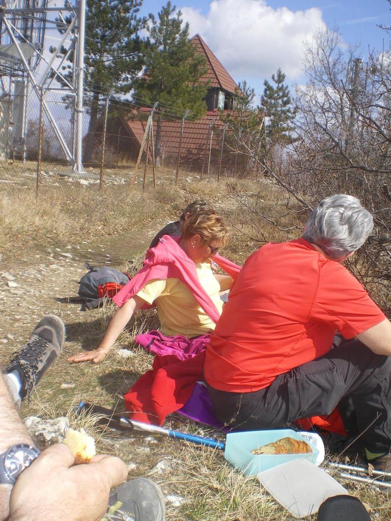 Par cette belle journée de printemps, nous étions 12 pour une randonnée de 15kms et 850 de dénivelé. Nous sommes partis de Nyons et avons gravi toute la matinée la montagne de Garde Grosse pour arriver au point culminant du double lacet et de ses antennes et relais.